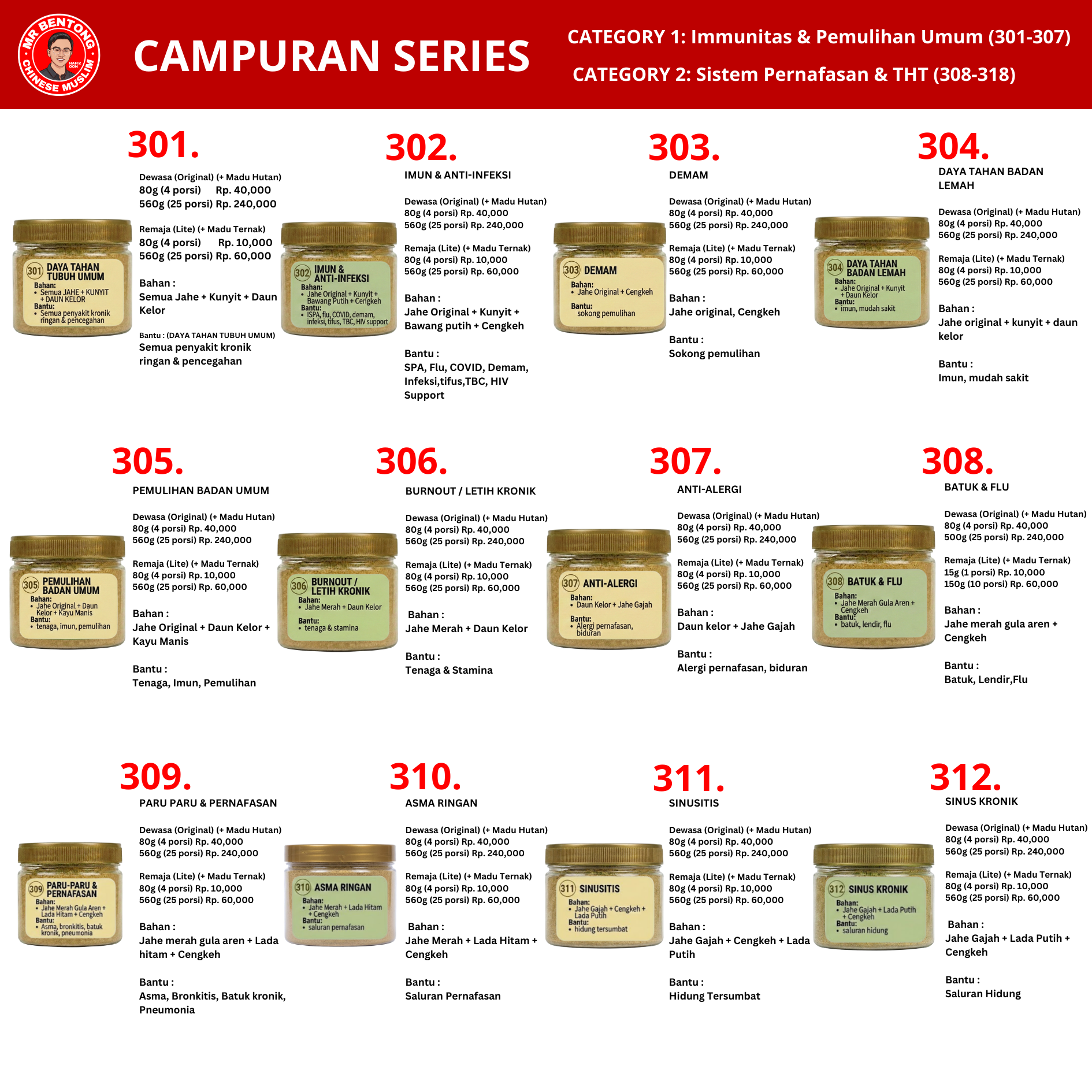 Mr. Bentong Premium Paste Series / Pasta Madu Herbal / Pes Herba (Varian 101-200)