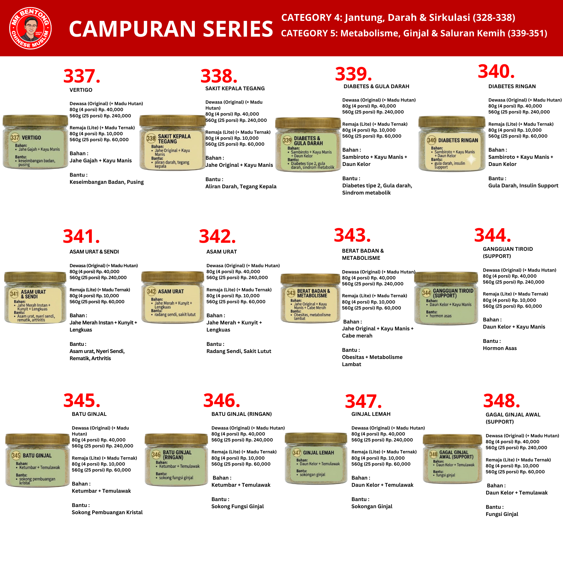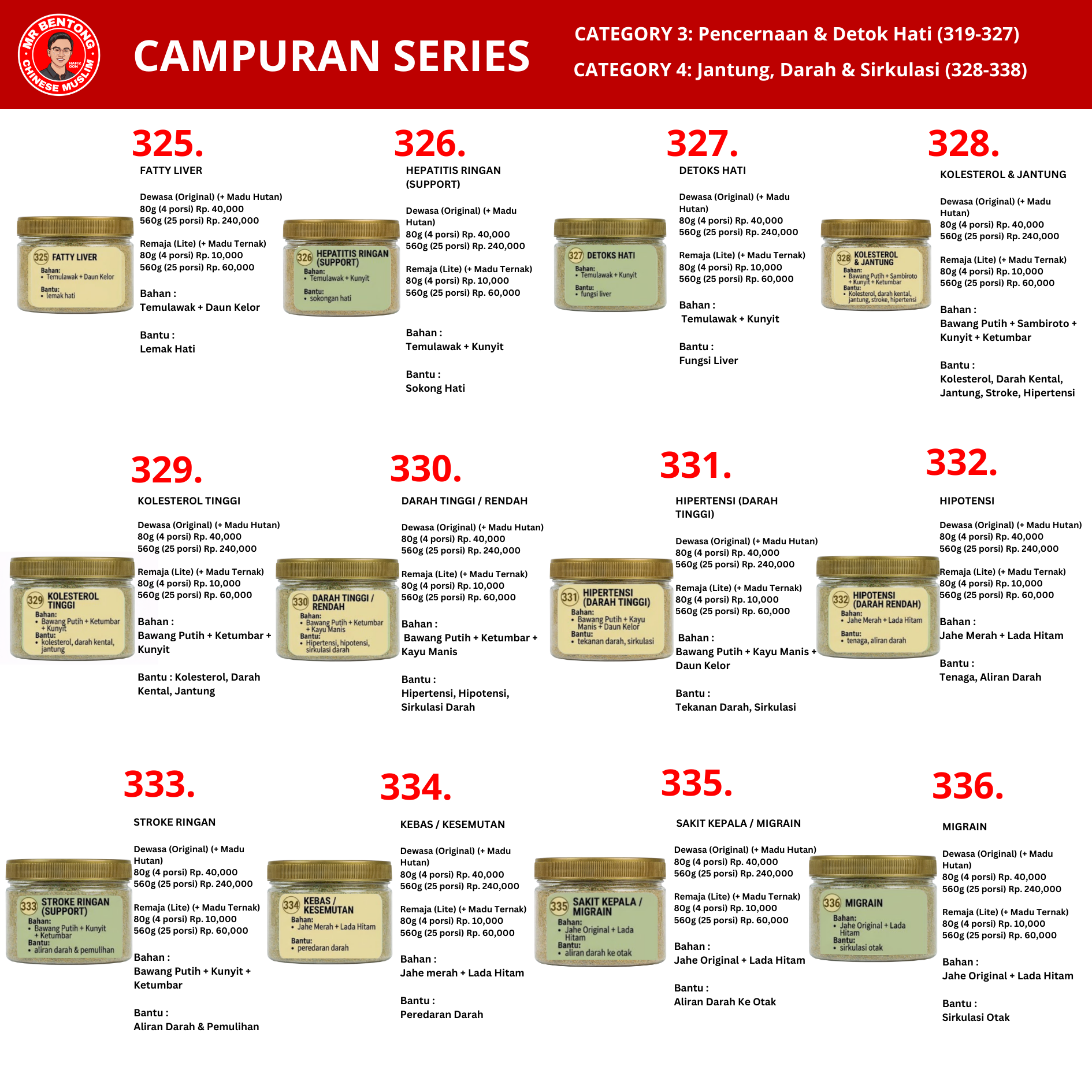 EN: Choose from 100 variants of Mr. Bentong’s natural spiced Herbal Honey Blends. Available in Original (Forest Honey) and Lite (Farmed Honey) formulas to support your daily wellness.